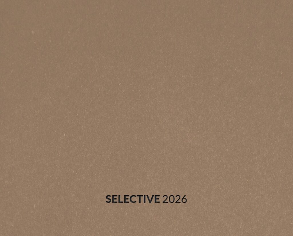 Consultez notre catalogue de la collection SELECTIVE 2026 pour obtenir des informations sur nos produits dont la finition métallisée est appliquée de manière sélective à partir d’un motif géométrique, créant ainsi un contraste sophistiqué entre texture et reflet.